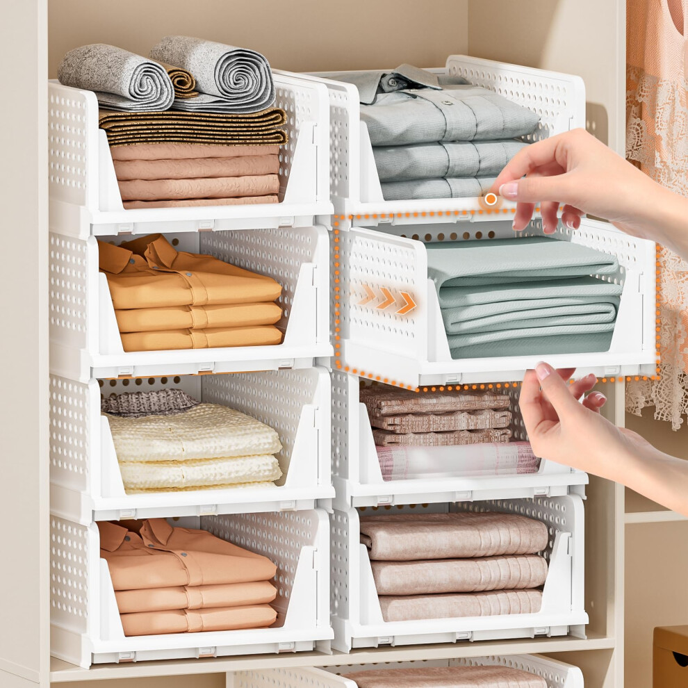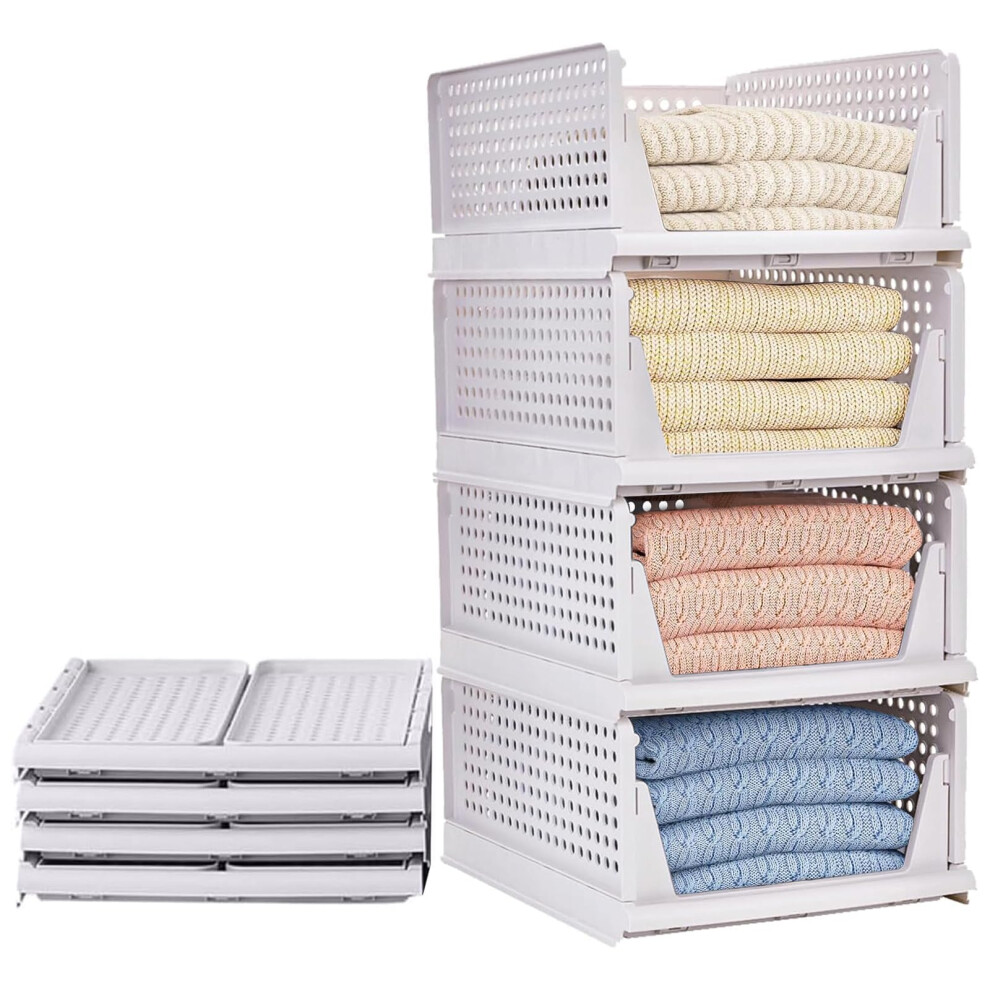 Yidaxing 4 Pack Wardrobe Storage Organiser, Stackable Storage Drawers for Clothes, Inside Wardrobe, Cupboard & Wardrobe, Space-Saving Plastic Closet Organiser for Bedroom & Bathroom (White)