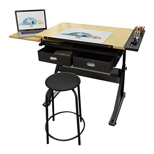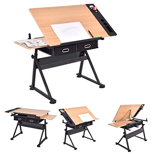 ABNNHK Drafting Tables Tiltable Drawing Table, Adjustable Art Desk, With Storage Craft Table, Drafting Table Maple Panel, Adult Drawing Desk