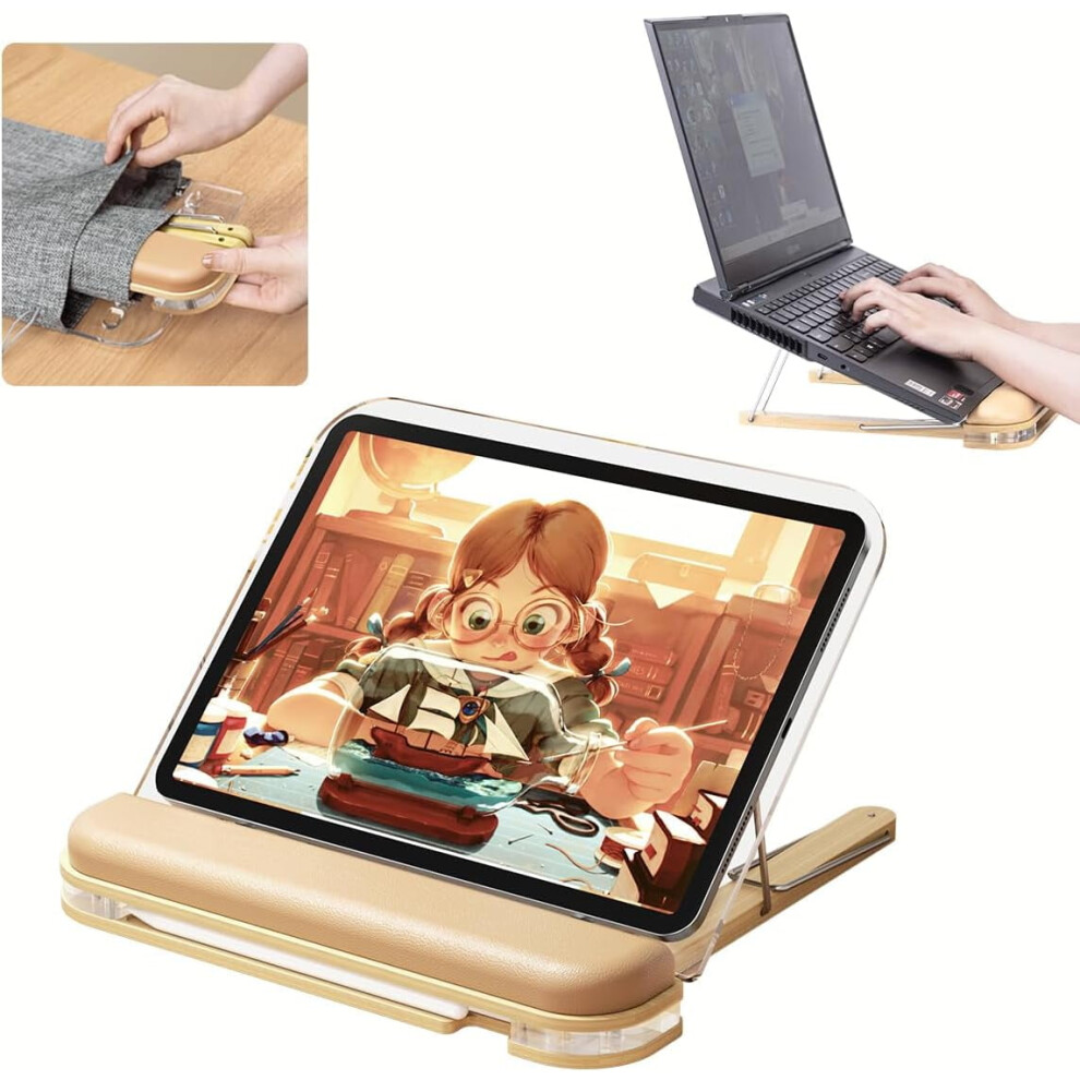 Compatible with iPad Drawing Tablet Stand, Solid Wooden Adjustable Angles Desktop Holder, Portable Foldable Laptop Holder