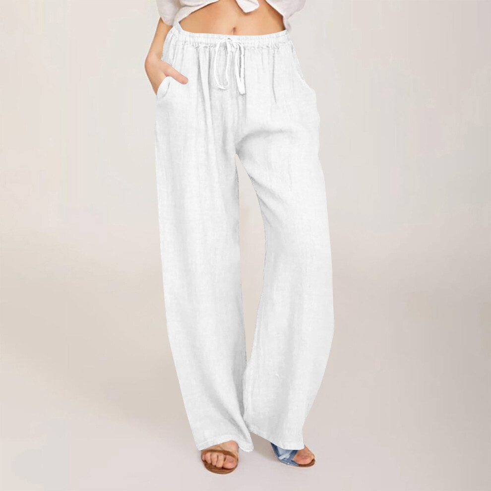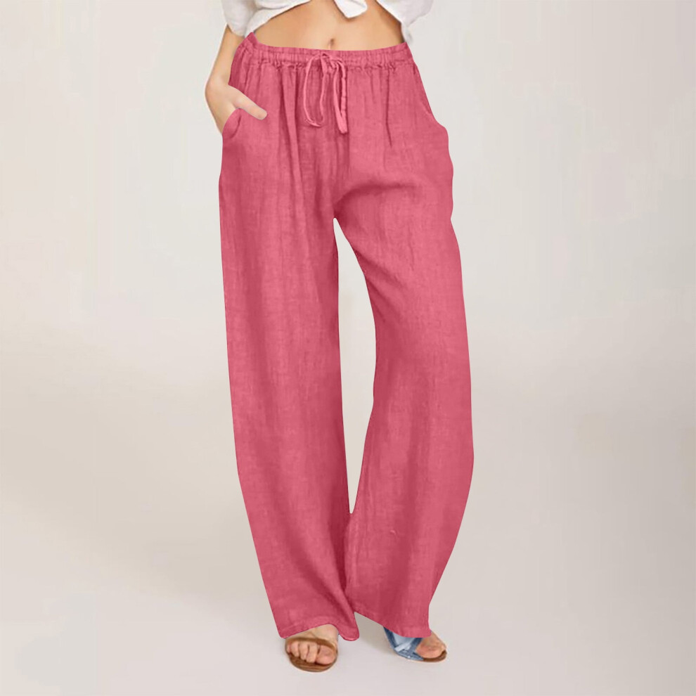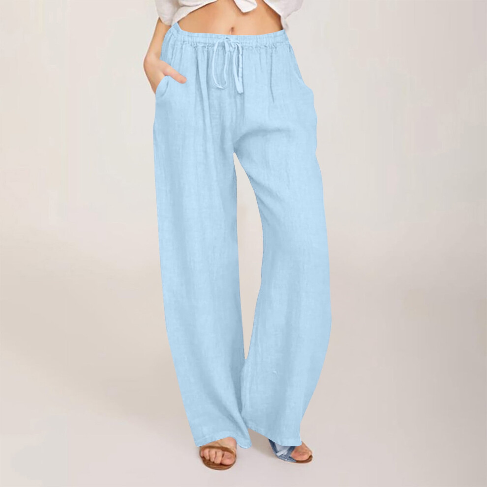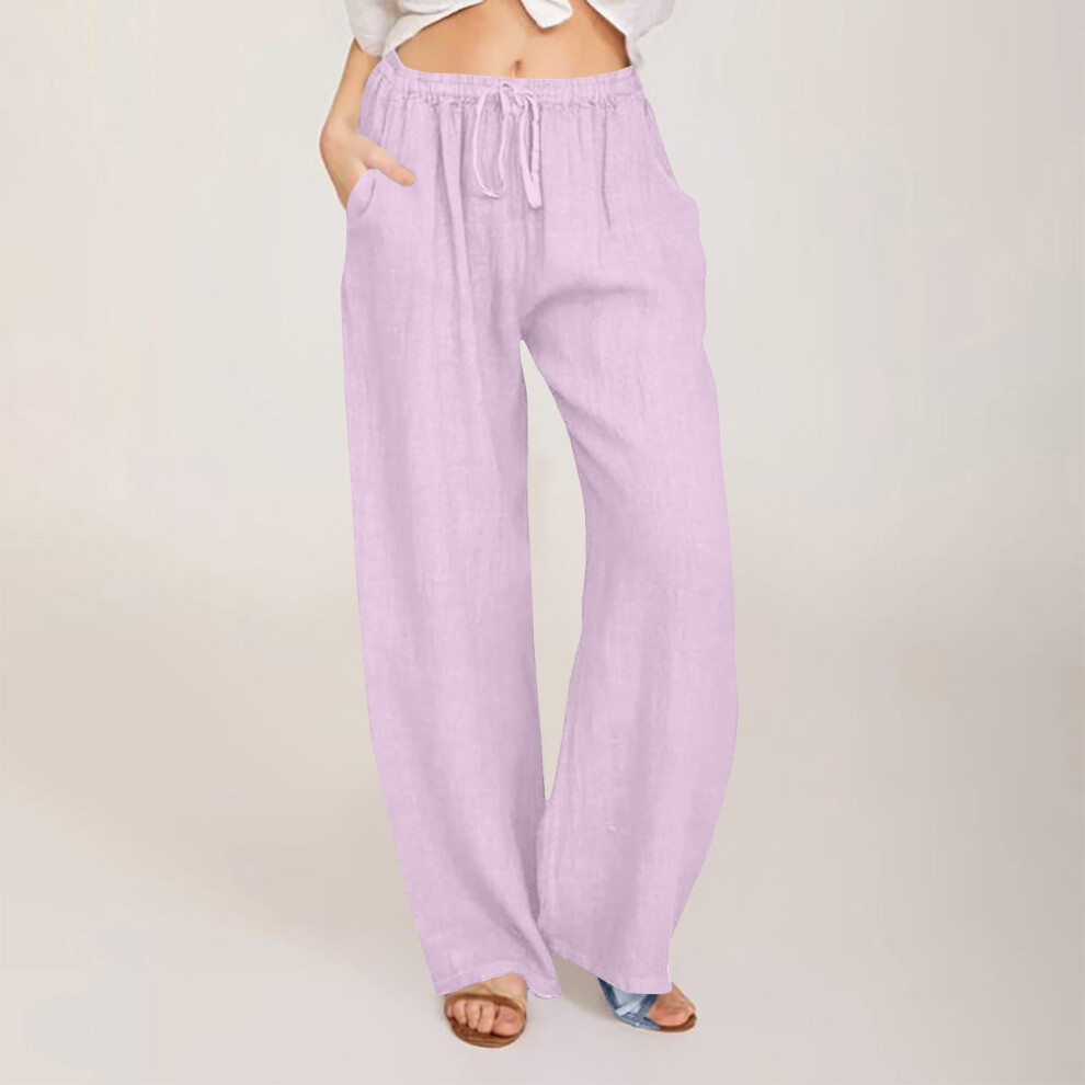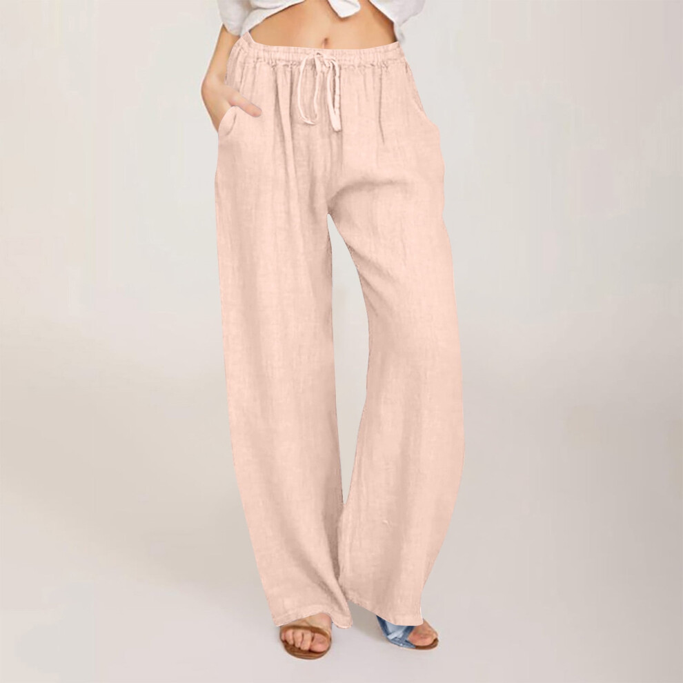 Drawstring Elastic Women's Trousers, Casual Linen High Waist Summer Pants, Soft Fabric Loose Fit Pants with Side Pockets, Breathable Lightweight
