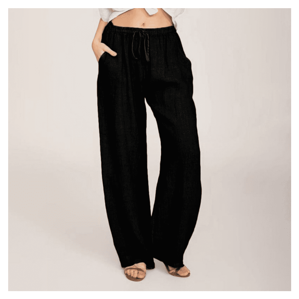 HERESOM Women Plus Size Cotton Linen Wide Leg Pants Casual Loose Fit Elastic High Waist Drawstring Palazzo Pants Trousers Womens Clothes