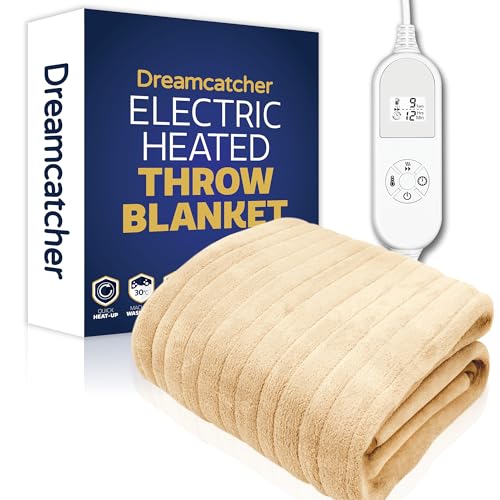 Dreamcatcher Cream Heated Throw Electric Blanket, 160 x 120cm Heated Blanket Machine Washable Soft Fleece Electric Throw Overblanket with 12HR Timer and 9x Control Heat Settings