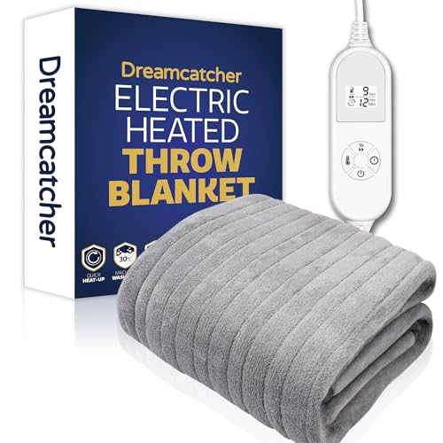 Dreamcatcher Grey XL Heated Throw Electric Blanket, 180 x 130cm Heated Blanket Machine Washable Soft Fleece Electric Throw Overblanket with 12HR Timer and 9x Control Heat Settings