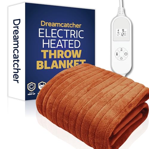 Dreamcatcher Terracota Heated Throw Electric Blanket, 160 x 120cm Heated Blanket Machine Washable Soft Fleece Electric Throw Overblanket with 12HR Timer and 9x Control Heat Settings