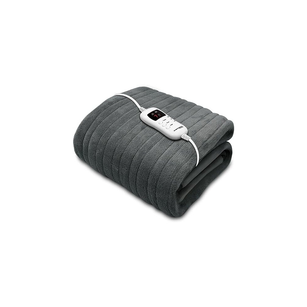 Purus Grey Deluxe Electric Heated Throw 160x120cm, Soft Fleece, 9 Heat & 12HR Timer Settings, Washable