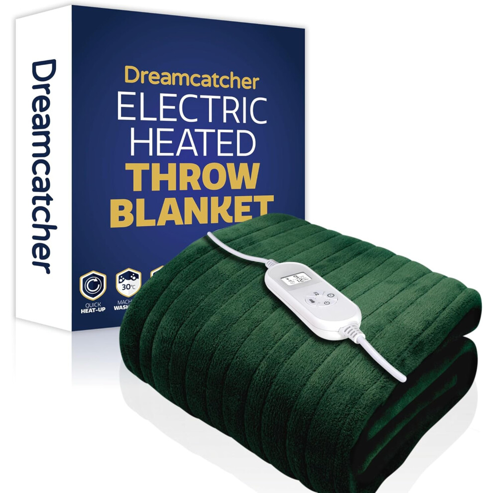 Dreamcatcher Green Heated Throw Electric Blanket, 160 x 120cm Heated Blanket Machine Washable Soft Fleece Electric Throw Overblanket with 12HR Timer and 9x Control Heat Settings