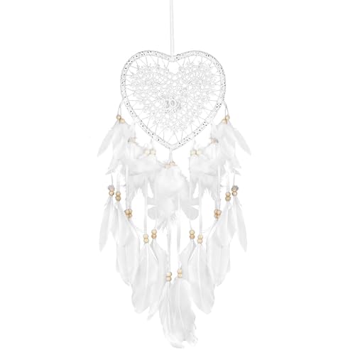 Dream Catcher,Lovely Heart Shape Dreamcatcher Handmade Lace Dream Catcher Feather Bead Wall Hanging Boho Woven Art Ornament Gift Craft Dreamcatcher Wind Chimes for Home Children Bedroom Decor