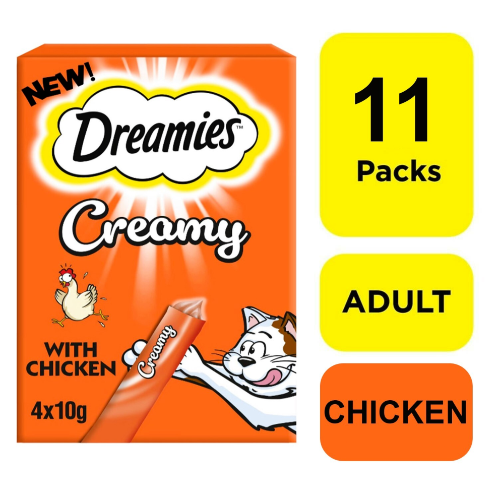 DREAMIES - Creamy Cat Treats - 11 x 40 g - Chicken - Multipack Snacks - 11 Packs