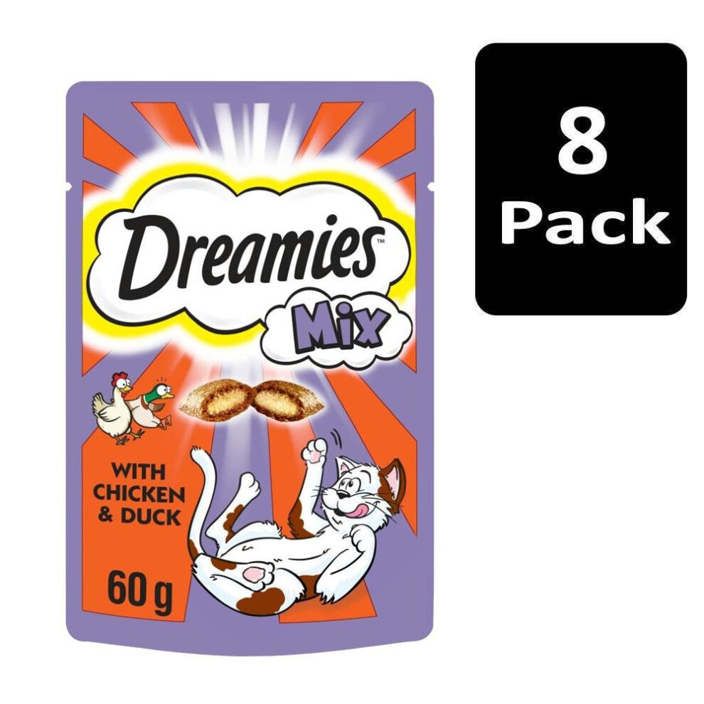 8 x 60g Dreamies Mix Adult Cat Treats Chicken & Duck Cat Biscuits (480g)