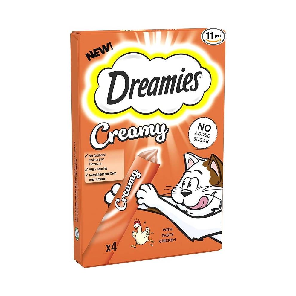 44 x 10g Dreamies Creamy Adult Cat & Kitten Treats with Tasty Chicken (11x40g)