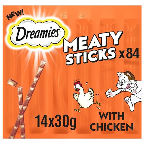 Dreamies Meaty Sticks 84 Pieces, Cat Treats Tasty Snacks with Delicious Chicken, Pack of 14 x(30g)