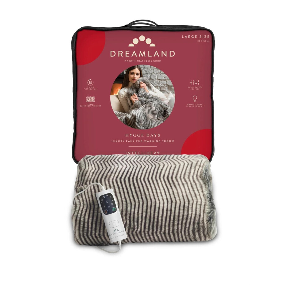 Dreamland Hygge Days Electric Blanket â Heated throw - Zebra, Luxury Faux Fur, 5-minute Fast heat up, 6 temperature settings, 1/3/9-hour auto timer,