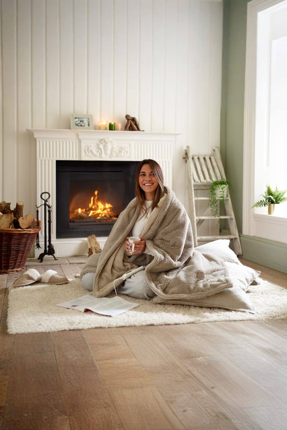 Dreamland Hygge Days Electric Blanket – Heated throw - Fallow Deer Print, Luxury Faux Fur, Fast heat up, 6 temperature settings, 1/3/9-hour auto timer, Electric throw, Machine Washable, 160x120cm
