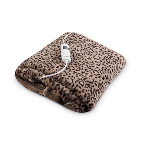 Carmen Comfort Fleece Luxury Electric Heated Throw and Over Blanket with 9 Heat Settings, Adjustable Timer, 200gsm Flannel Fleece Material & 320gsm Faux Rabbit Fur, Leopard Print