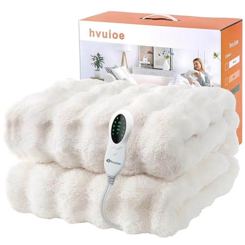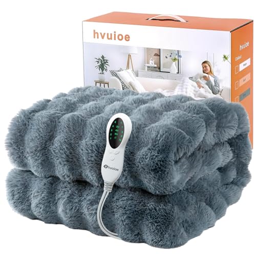 hvuioe Heated Throw, 160x130cm, Plush Soft Faux Rabbit Fur Electric throw for Bed Sofa Office, Fast Heat Up, Auto Shut Off, Overheat Protection, Machine Washable