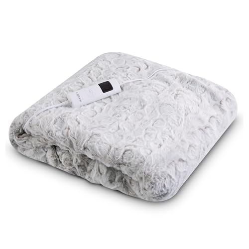 Cosi Home® Luxury Faux Fur Heated Throw - Electric Heated Blanket with 9 Heat Settings, 9 Hour Timer and Overheat Protection - Machine Washable with Remote Control - Grey Fur Throw