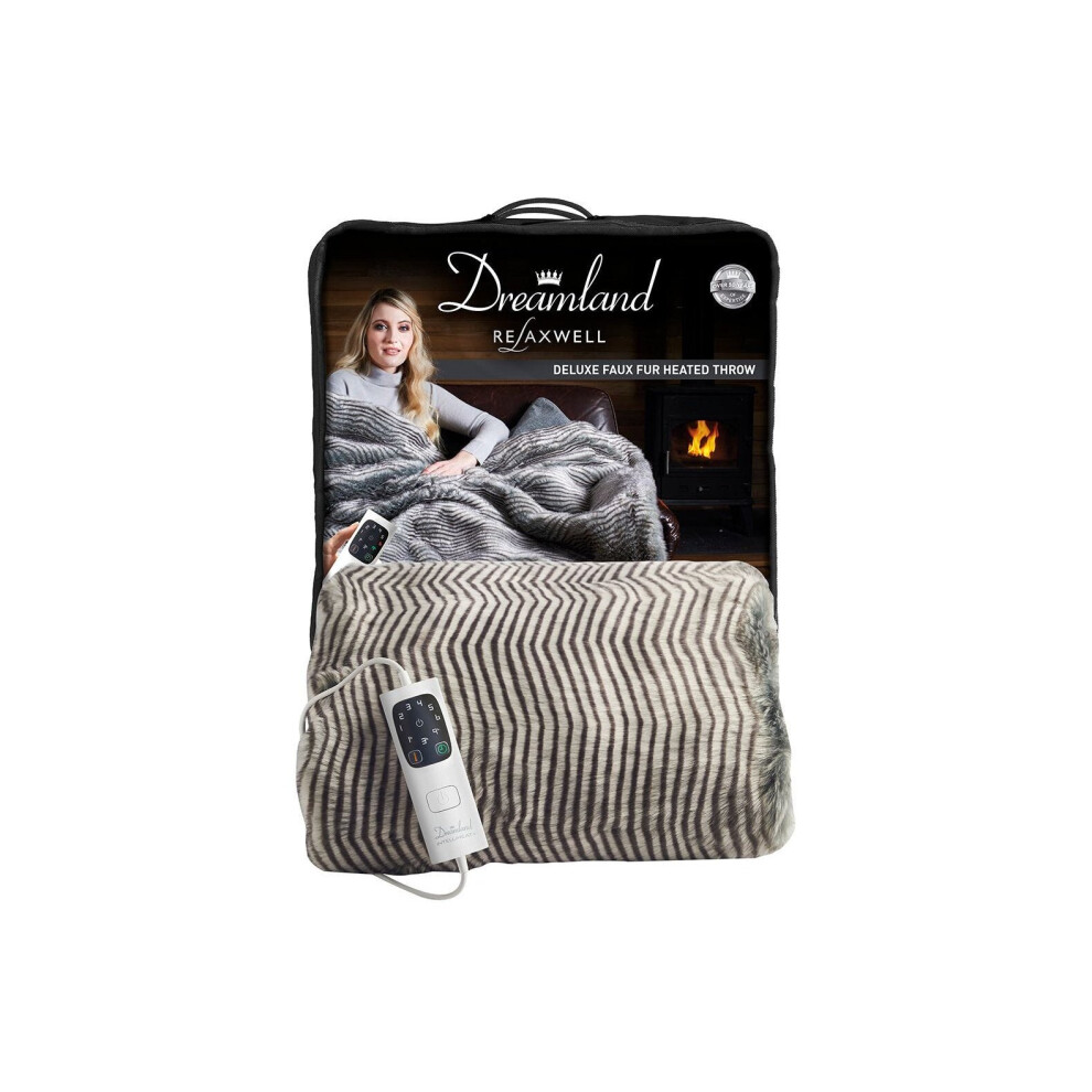 Dreamland Hygge Days Electric Blanket â Heated throw - Zebra, Luxury Faux Fur, 5-minute Fast heat up, 6 temperature settings, 1/3/9-hour auto timer,