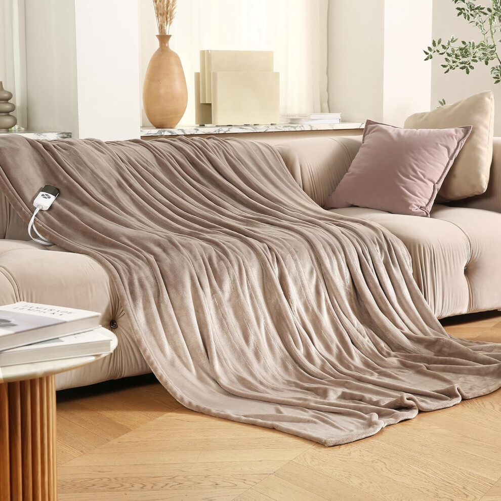 Thermal Fleece Electric Heated Blanket Throw Super Soft Flannel Velvet Faux Fur Mink Throw ? 6 Heat Settings ? Digital Controller ? 4 Hours Auto Shut