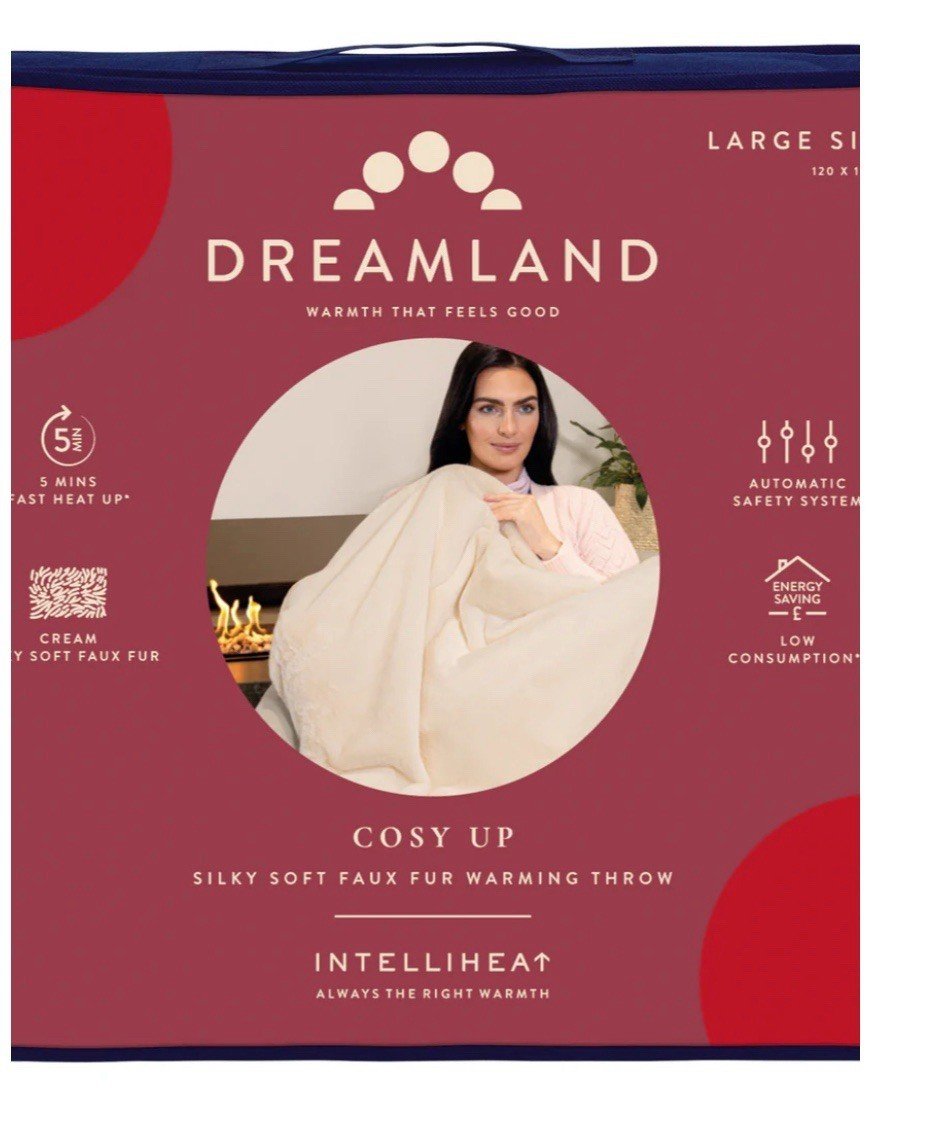 Dreamland Cosy Up Silky Soft Faux Fur Warming Throw/Electric Blanket with 6 Heat Settings (Intelliheat technology, 160 x 120 cm, Machine washable, Detachable control, 1/3/9-hour auto timer) Cream