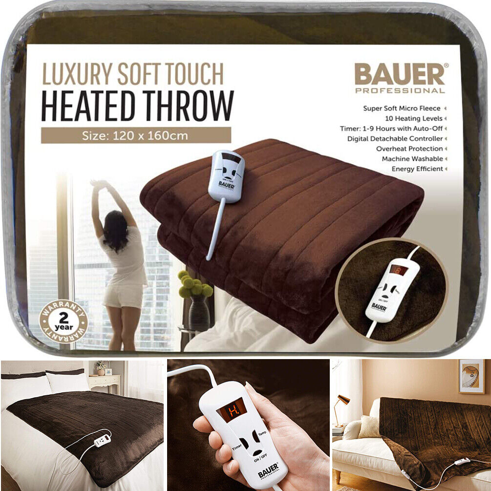 Soft Touch Electric Heated Blanket Warm Over Throw Fleece Faux Fur Digital Timer
