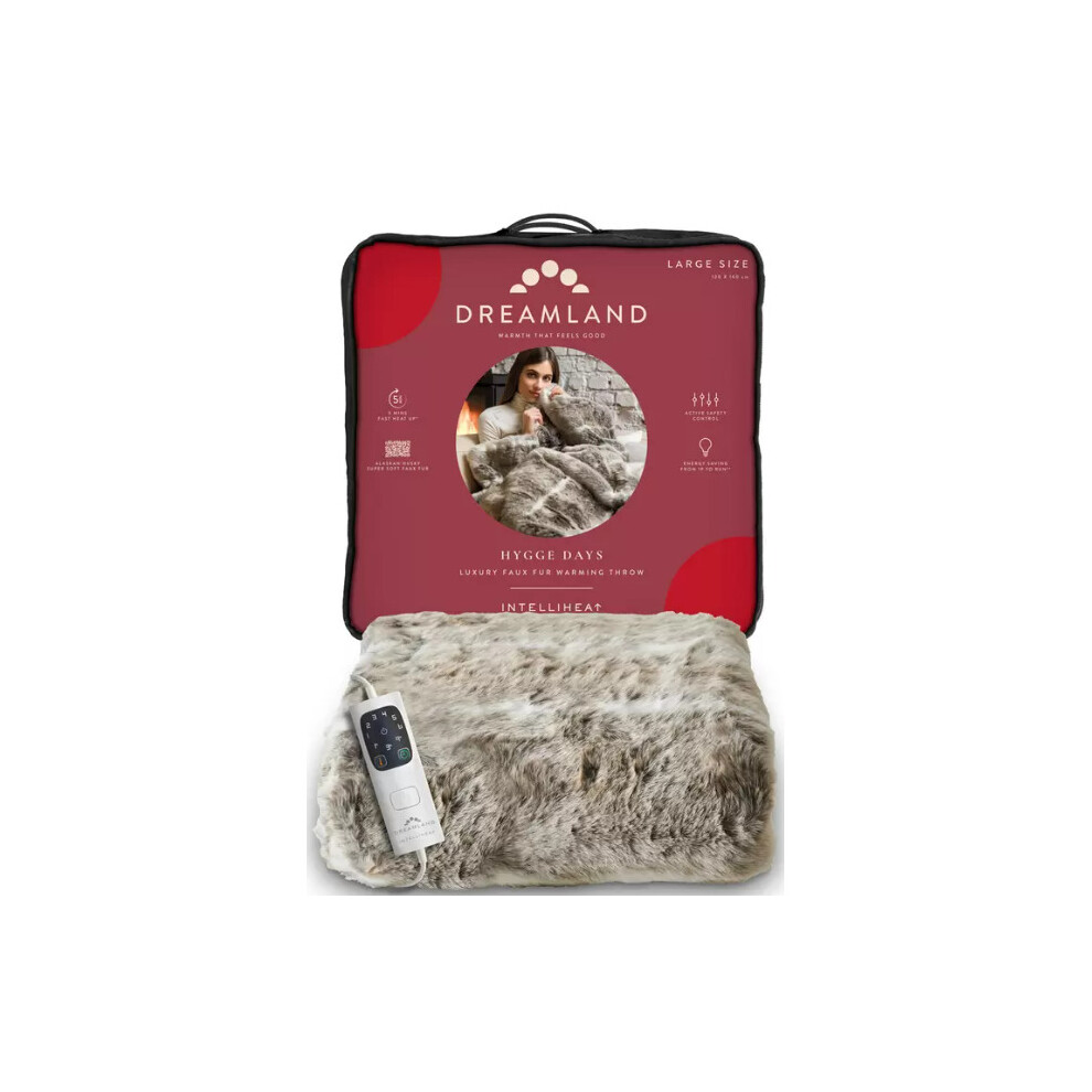 DREAMLAND Hygge Days Faux Fur Heated Throw - Fallow Deer, 160 x 120 cm