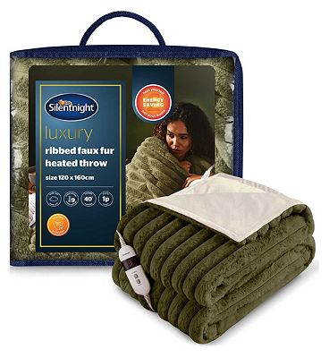 Silentnight Luxury Ribbed Faux Fur Heated Throw 9 Heat Settings Olive Green