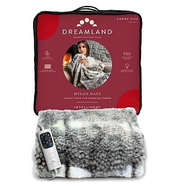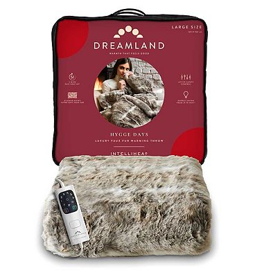 Dreamland Heated Throw Hygge Days Luxury Faux Fur Warming Alaskan Husky Faux Fur