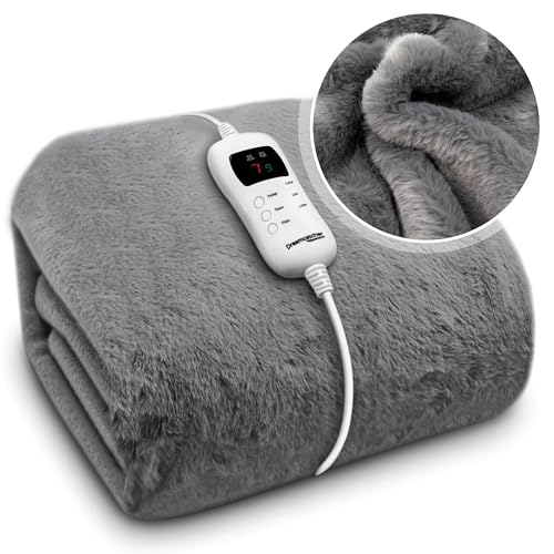 Dreamcatcher Dark Grey Faux Fur Heated Throw Electric Blanket, 160 x 120cm Heated Blanket Machine Washable Soft Fleece Electric Throw Overblanket with 9HR Timer and 9x Control Heat Settings