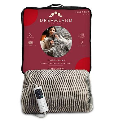 Dreamland Hygge Days Electric Blanket – Heated Throw – Grey Cloudy Supersoft Faux Fur, Fast 5 Minute Heat up, 6 Temperature Settings, 1/3/9 Hour Timer, Electric Throw, Machine Washable, 160x120cm