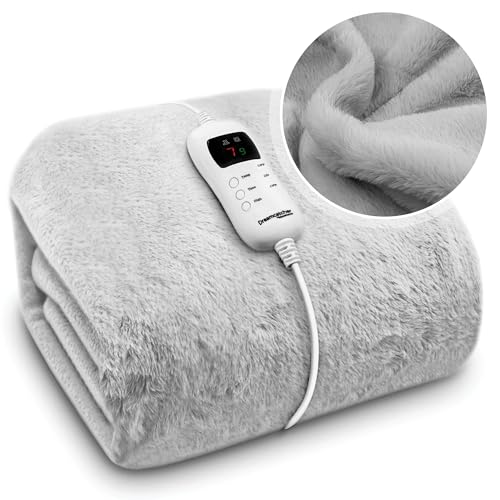 Dreamcatcher Light Grey Faux Fur Heated Throw Electric Blanket, 160 x 120cm Heated Blanket Machine Washable Soft Fleece Electric Throw Overblanket with 9HR Timer and 9X Control Heat Settings