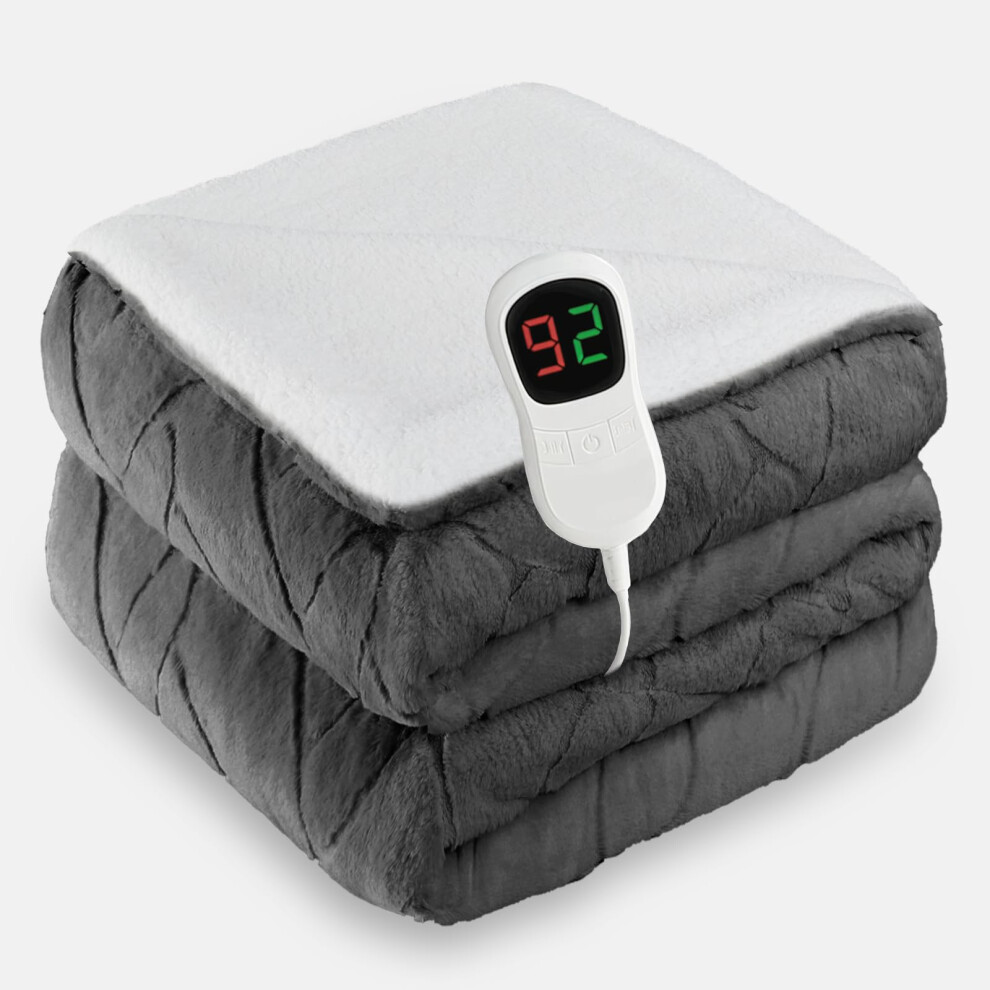 Homemate Heated Throw Electric Blanket - 130x160cm Luxury Faux Fur Sherpa Heated Throw, 1/2/4/6/8 Hours Auto-Off 10 Heat Levels Digital Control With Over-Heat Protection Grey