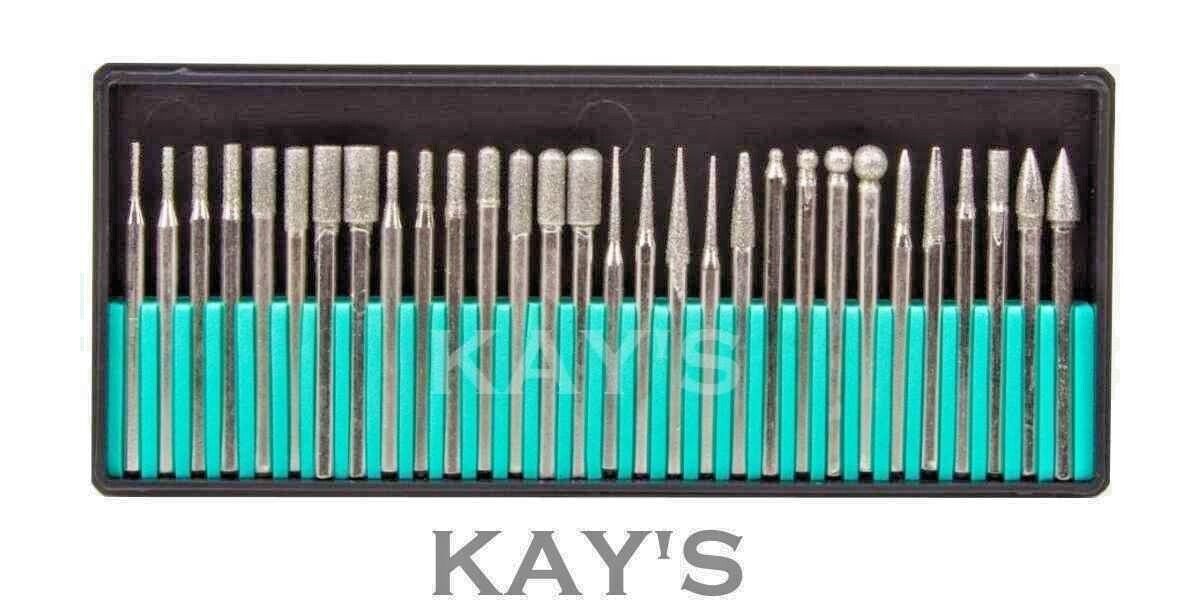 30Pc DIAMOND BURR ROTARY TOOL BIT SET DREMEL ENGRAVING METAL GLASS WOOD STONE