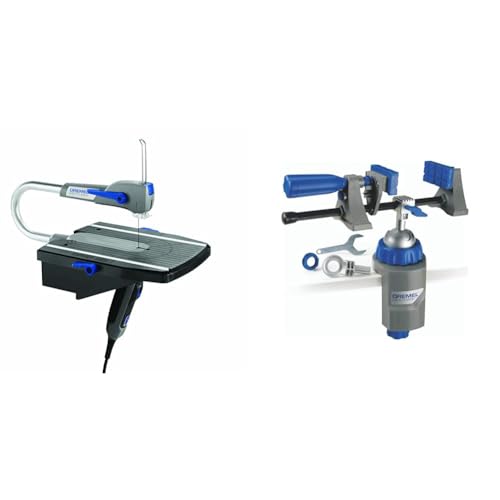 Dremel MS20 Moto-Saw Scroll Saw, 2-in-1 Compact Table Saw & Fretsaw (70 W) with 1 Attachment and 5 Saw Blades, Blue & 2500 Multi-Vise, 3-in-1 Adjustable Bench Vice with Clamp and Tool Holder