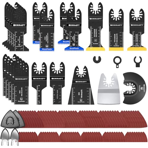 Vtopmart 114 Pcs Oscillating Tool Accessories Kit, Multitool Blade Set for Wood & Metal with Sandpaper Pads, Universal Oscillating Saw Blades Compatible with Bosch, DeWalt, Makita, Dremel and more
