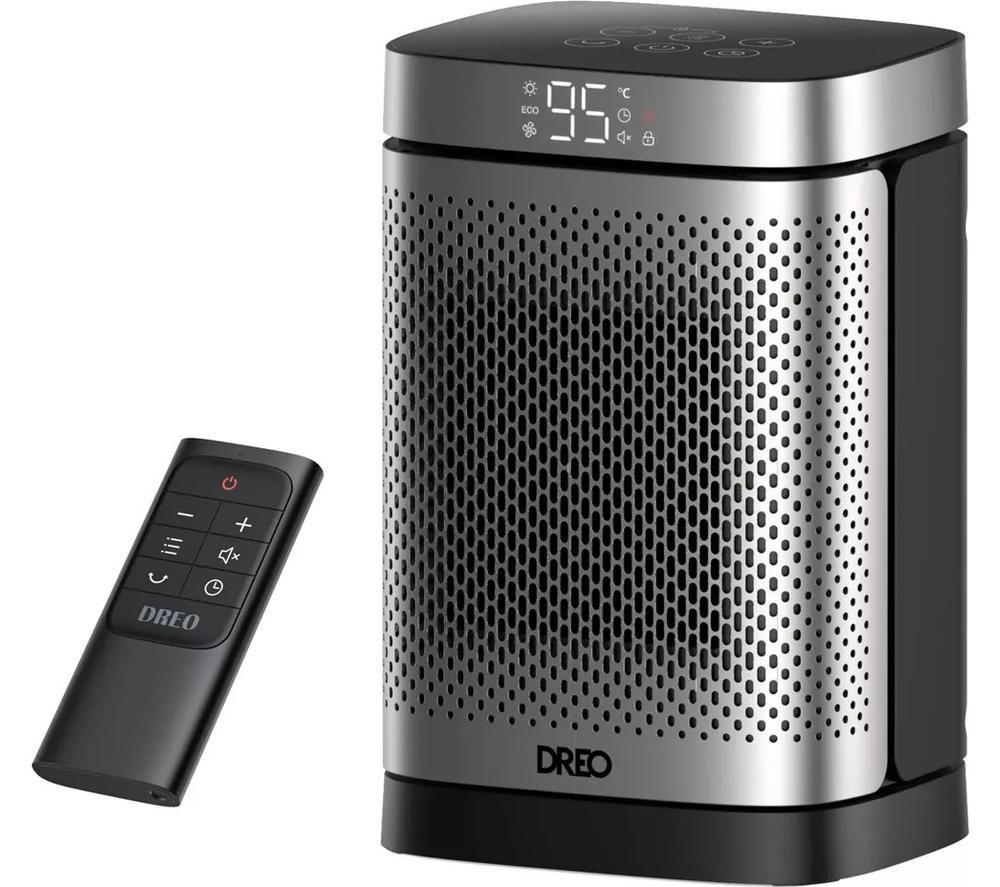DREO Atom 416 Smart Fan Heater - Silver & Black, Black,Silver/Grey