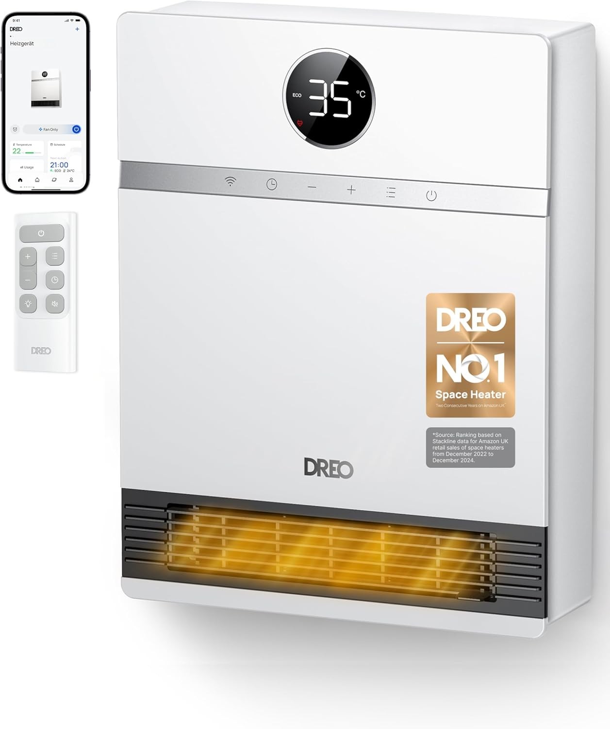 Dreo Smart Wall Heater, Electric Space Heater for Bedroom, 120 Vertical Oscillation, Adjustable Thermostat, Remote Control, 24H Timer, Easy-Mount He