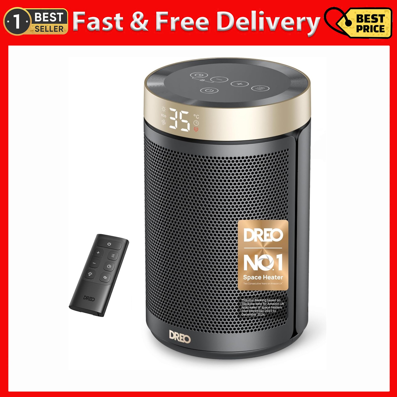 Dreo Electric Heater 1500W Energy Efficient Space Room Upgrade Remote Portable Ceramic Fan Heaters Thermostat 3 Modes 12H Timer Overheat