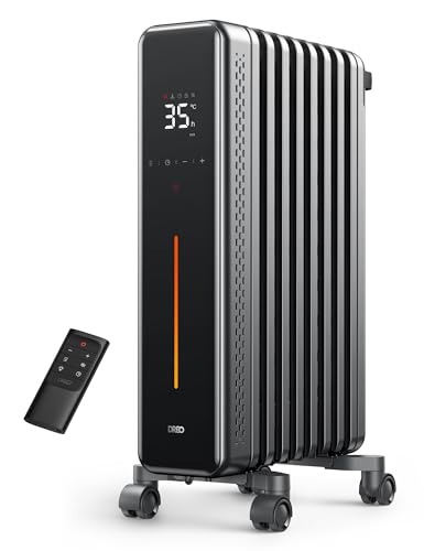 Dreo 2000W Smart Oil Filled Radiator for Large Room, 9 Fins Silent Electric Heater with Temp Display, Digital Thermostat, Remote, Low Energy Heaters for Home, 7 Safety Protection, 24H Timer