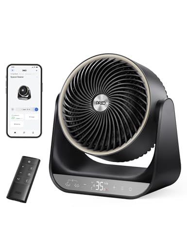 Dreo Smart Space Heater, Electric Heater for Whole Room Use with Remote, 12.14 ft/s Portable Heater for Indoor Use, 70° Oscillation, 3 Modes, 8 Safety Protections, Fast Heat for Bedroom, Office, Black
