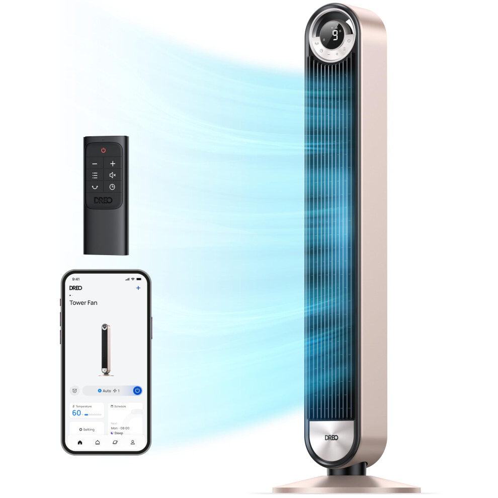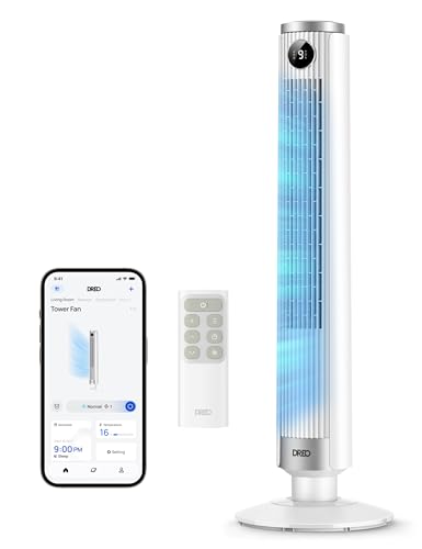 DREO 42 Inch Smart Tower Fan, 8.5m/s High-Velocity Cooling Fans, 9 Speeds, 25dB Silent Bladeless , 4 Modes,12H Timer, WiFi/Alexa/Remote Control