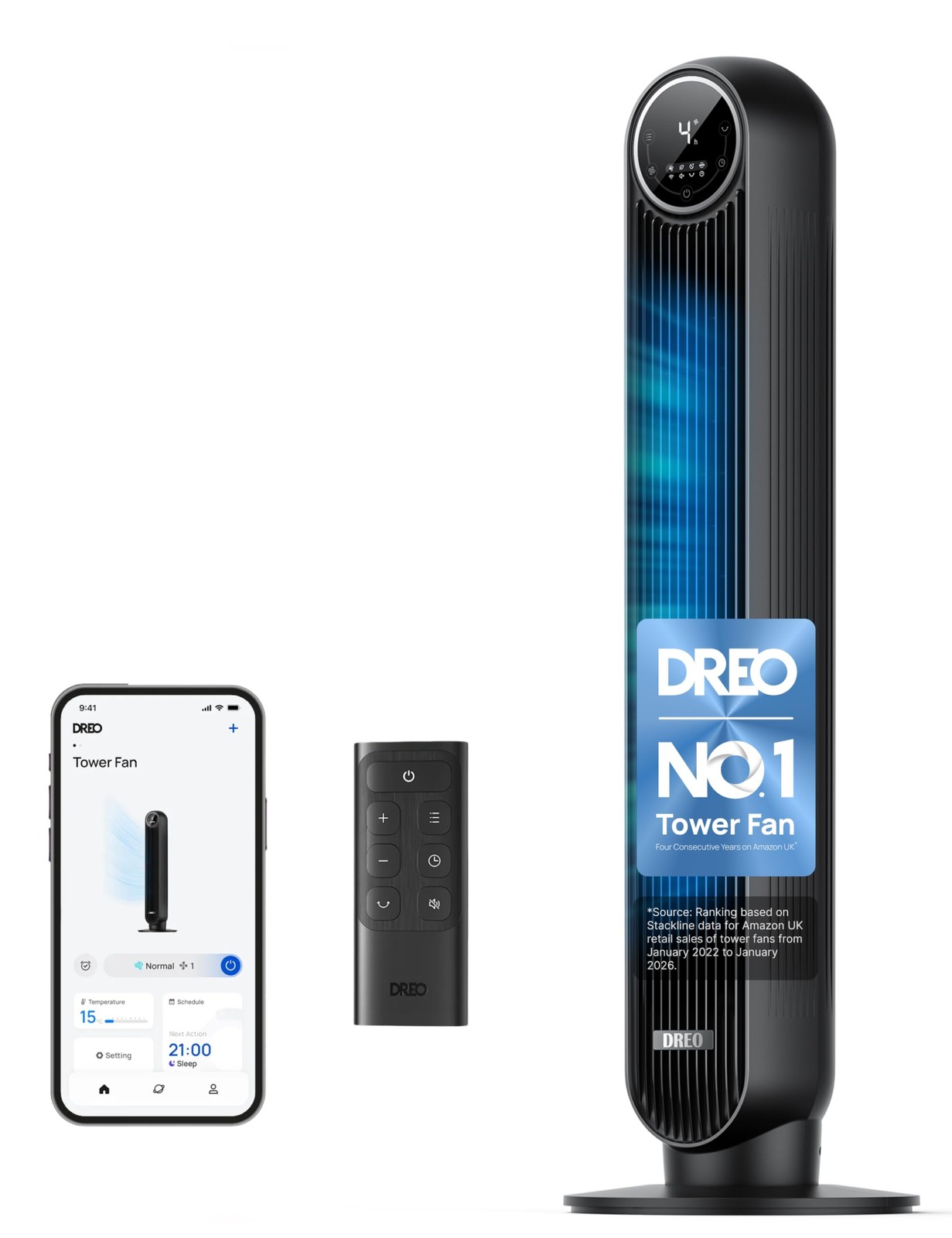 Dreo DR-HTF011S, Smart Cruiser Tower Fan in Black