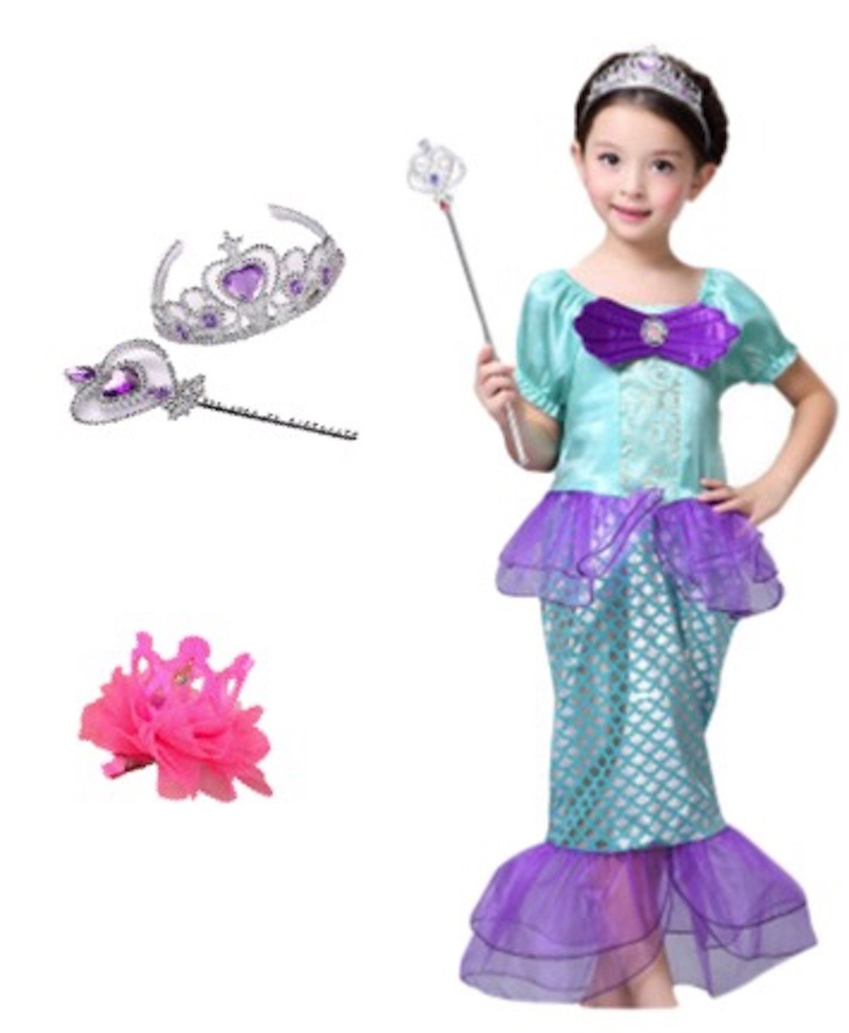 Little Girls Mermaid Costume, Princess Mermaid Costumes Set with Accessories, Mermaid Fancy Dress Up Princess Ariel Mermaid Glitter Girls Costume for