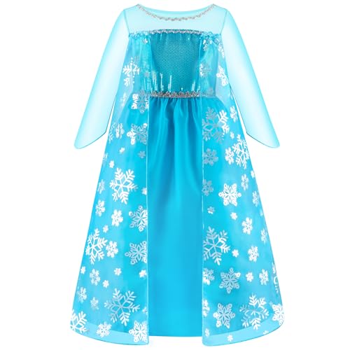 ELSA & ANNA Girls Princess Costumes - Snow Queen Fancy Party Dress - Princess Dress Up - Girls Fancy Dress for Parties, Birthdays, Cosplay & Halloween - (CNDR15) (5-6 Years)