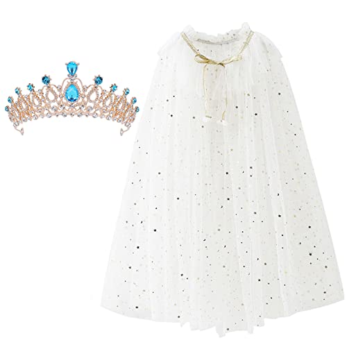 XEPST Princess Cape White Princess Cloak with Princess Crown Girls, Princess Fancy Dress Accessories Princess Dress Up Sparkling Sequins Cape Carnival Birthday Party Cosplay Girl’s Gift (HT48)