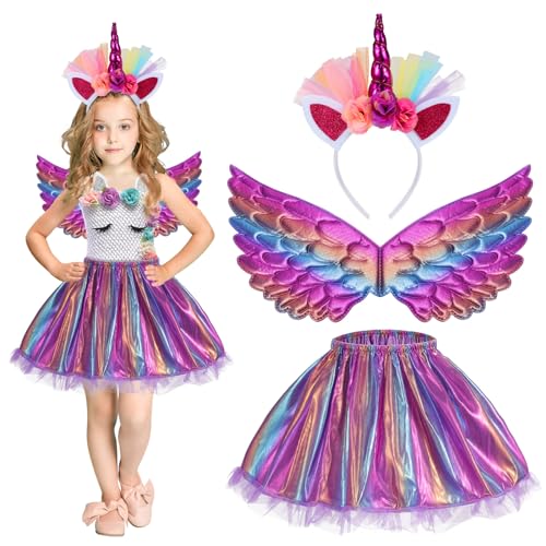 Hifot Unicorn Costume Kids Tutu Skirt for Girls with Unicorn Wings Unicorn Headband Unicorn Dress Princess Dress up for Birthday Outfit Christmas Halloween Costume