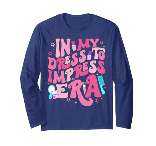 Retro in My Dress to Impress Era Birthday Girl Bday Party Long Sleeve T-Shirt, Adult Unisex, Navy Blue, Medium