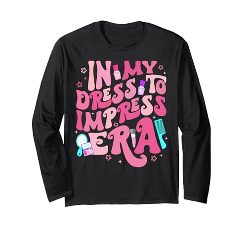 Retro in My Dress to Impress Era Birthday Girl Bday Party Long Sleeve T-Shirt, Adult Unisex, Black, Small