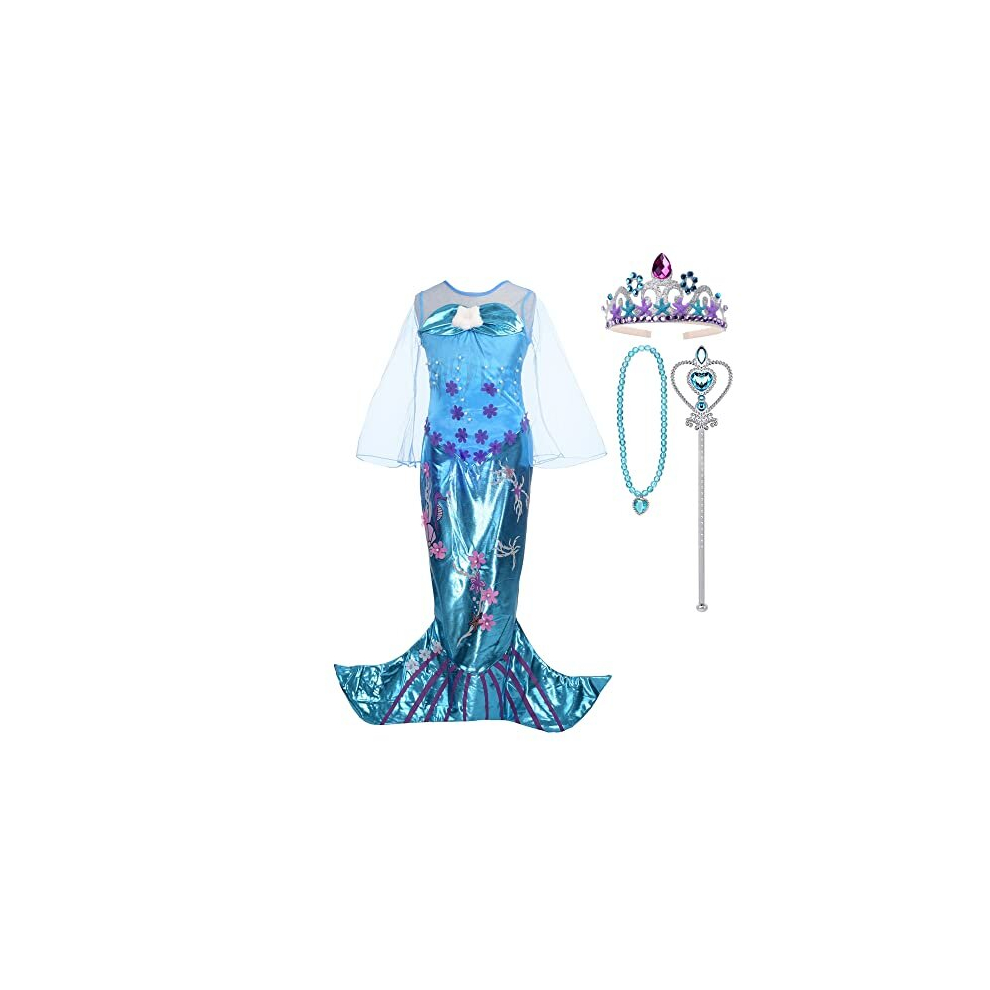 Princess Mermaid Fancy Dress Up Costumes for Kids Girls Birthday Theme Party Outfit with Accessories Age 4 Years, Blue