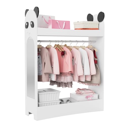 Hironpal Kid Dress Up Storage with Mirror Kids Wardrobe Dressing Up Rail Open Hanging Costume Armoire Closet Pretend Storage Organizer Children Clothes Center for Girl Bedroom (panda,no drawer,white)