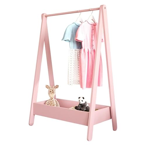 AIYAPLAY Wooden Kids Clothes Rail, Dress Up Rail with Top, Bottom Storage Shelves, for 3 Years+, 70 x 37 x 103cm, Pink